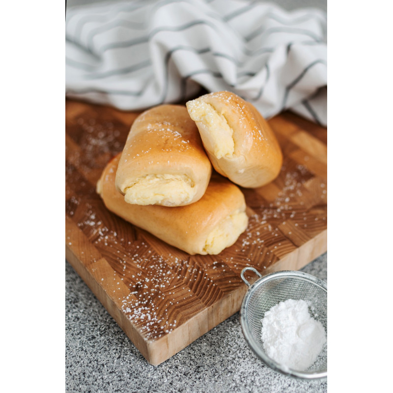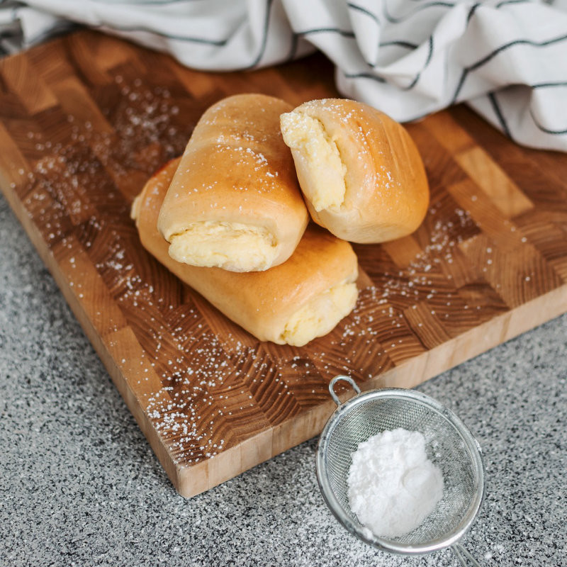 Sudedamosios dalys: kvietiniai miltai, varškės ir aug. Riebalų produktas(varškė), kiaušiniai, mišinys mieliniai tešlai (cukrus, bulvių dribsniai, pieno milteliai, kviečių glitimas, druska, išrūgų milteliai( su pienu), kvapiosios medžiagos, vaisių milteliai, prieskoniai, fermentai), vanilinis kremas(cukraus pudra, mod.krakmolas(bulvių) E414, pieno milteliai, išrūgų milteliai, tirštiklis E401, vanilinės kvapioji medžiaga, b-karotenas), margarinas (augaliniai aliejai(rapsų), vanduo), cukrus, mielės.