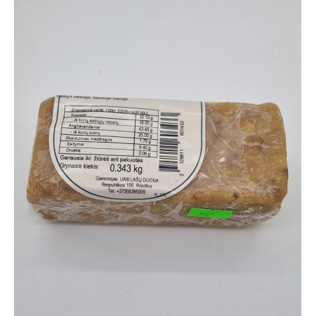 Sudedamosios dalys: šakočio trupinėliai (kiaušiniai, sviestas (82% riebumo, pasterizuota grietinėlė), kvietiniai miltai, grietinė (30% riebumo, gyvos pieno rūgšties bakterijos), cukrus, vanilinis cukrus (kvapnioji medž. EI vanilinas)), sviestas (82% riebumo, pasterizuota grietinėlė), pienas (2,5% riebumo), saldintas sutirštintas pienas (pienas 55%, cukrus). Laikyti vėsioje , sausoje vietoje.